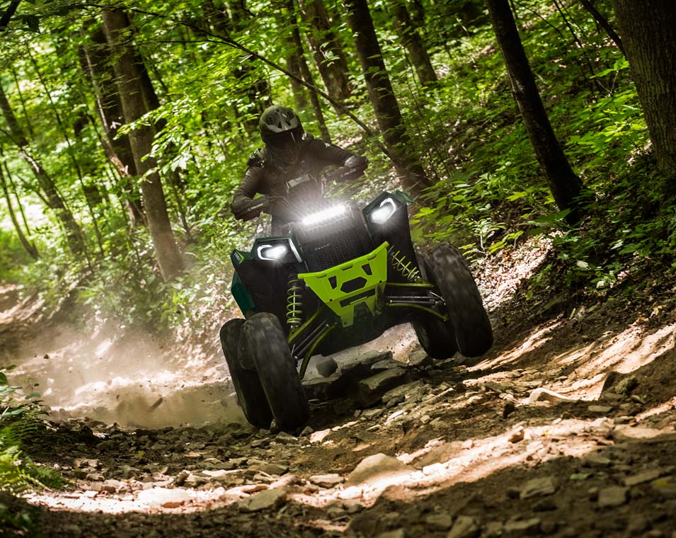 2 modes de conduite : Performance/Standard, Prise d'alimentation 12 volts, pré-câblée pour chauffe-mains et chauffe-pouces, port de chargement de batterie indépendant, Pare-chocs avant, plastiques peints, ressorts peints, élargisseurs d'ailes